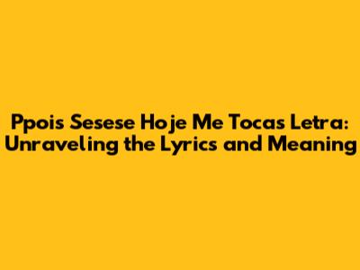 Have you ever stumbled upon a song that just sticks in your head, even if you don't quite understand the lyrics? Ppois Sesese Hoje Me Tocas is one of those songs for many people. This article dives deep into the lyrics and potential meaning behind this intriguing title. Whether you're a die-hard fan or just curious, get ready to explore the world of Ppois Sesese Hoje Me Tocas.