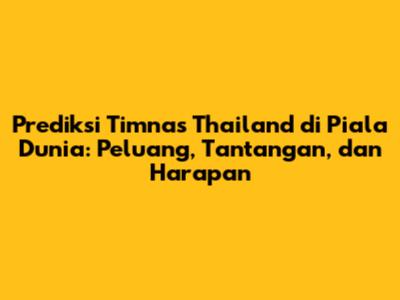Prediksi Timnas Thailand di Piala Dunia selalu menjadi topik menarik dan penuh harapan bagi para penggemar sepak bola di Thailand dan juga di seluruh dunia. Sejak sepak bola menjadi olahraga global, Timnas Thailand telah menunjukkan perkembangan signifikan. Dengan semangat juang yang tinggi, potensi pemain muda berbakat, serta dukungan penuh dari para suporter, harapan untuk melihat Thailand berkompetisi di panggung Piala Dunia semakin membara. Artikel ini akan membahas secara mendalam mengenai peluang, tantangan, dan harapan terkait prediksi Timnas Thailand di Piala Dunia, serta menganalisis faktor-faktor kunci yang dapat memengaruhi perjalanan mereka.