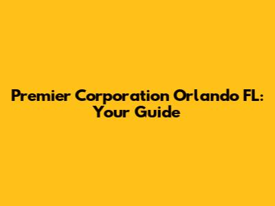 Premier Corporation Orlando FL: Your Guide