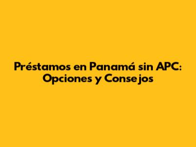 Préstamos En Panamá Sin APC: Opciones Y Consejos
