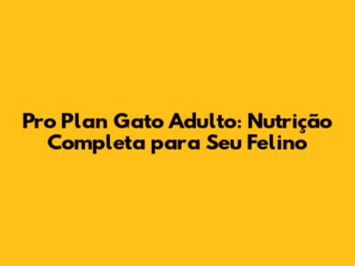 Pro Plan Gato Adulto: Nutrição Completa