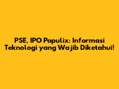 PSE, IPO Populix: Informasi Teknologi Yang Wajib Diketahui!