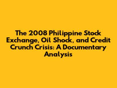 The confluence of the Philippine Stock Exchange (PSE) downturn, the oil shock, and the global credit crunch in 2008 presented a multifaceted crisis for the Philippine economy. This documentary analysis delves into the intricacies of each component, examining their individual impacts and the synergistic effects that amplified the overall economic distress. We aim to provide a comprehensive understanding of the events, their causes, and the lessons learned, offering valuable insights for policymakers, investors, and the general public.