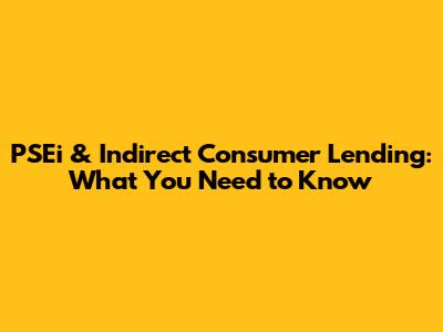 PSEi & Indirect Consumer Lending: What You Need To Know