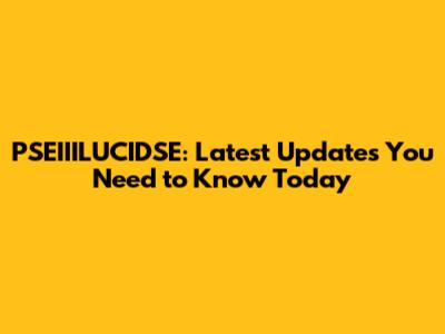 PSEIIILUCIDSE: Latest Updates You Need To Know Today