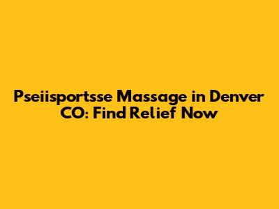 Pseiisportsse Massage In Denver CO: Find Relief Now