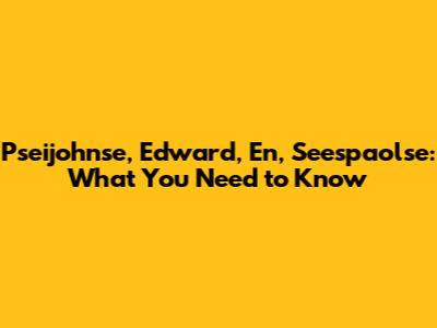 Pseijohnse, Edward, En, Seespaolse: What You Need To Know