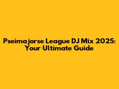 Pseimajorse League DJ Mix 2025: Your Ultimate Guide