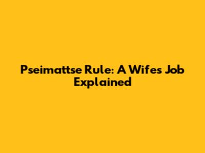 Pseimattse Rule: A Wife's Job Explained