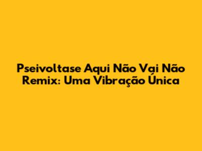 Pseivoltase Aqui Não Vai Não Remix: Uma Vibração Única