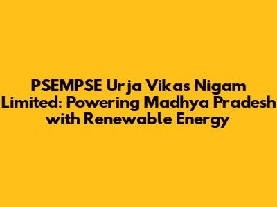 PSEMPSE Urja Vikas Nigam: Sustainable Energy In MP