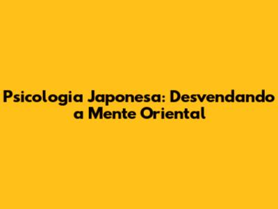Psicologia Japonesa: Desvendando A Mente Oriental