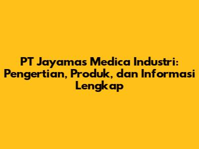 PT Jayamas Medica Industri: Pengertian, Produk & Informasi Lengkap