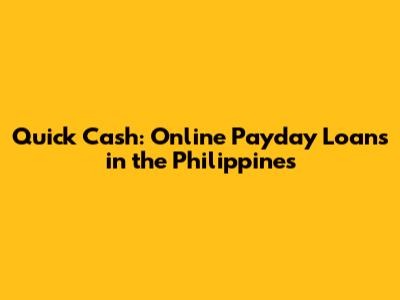 Quick Cash: Online Payday Loans In The Philippines