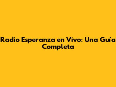 Radio Esperanza En Vivo: Una Guía Completa