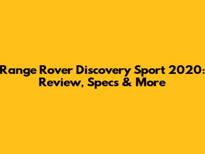 Range Rover Discovery Sport 2020: Review, Specs & More