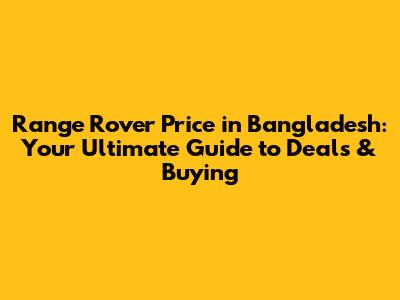 Range Rover Price In Bangladesh: Deals & Buying Guide