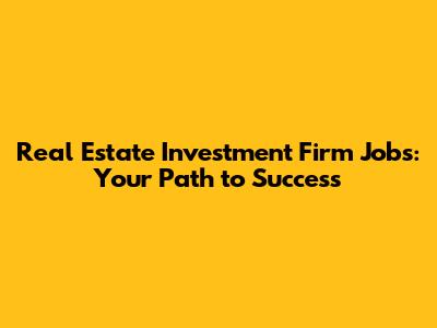 Real Estate Investment Firm Jobs: Your Path To Success