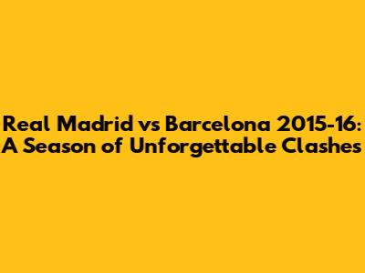 Real Madrid Vs Barcelona 2015-16: Epic Battles & Unforgettable Moments