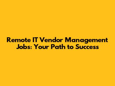 Remote IT Vendor Management Jobs: Your Path To Success