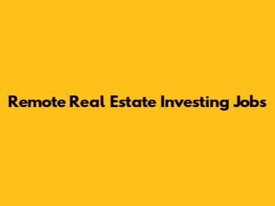Finding Remote Real Estate Investing Jobs