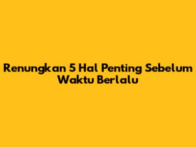 Renungkan 5 Hal Penting Sebelum Waktu Berlalu