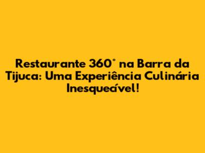 Restaurante 360° na Barra da Tijuca: Se você está procurando uma experiência gastronômica única, com vistas deslumbrantes e um ambiente sofisticado, você veio ao lugar certo! A Barra da Tijuca, no Rio de Janeiro, é um paraíso para os amantes da boa comida, e o restaurante 360° se destaca como uma joia rara. Prepare-se para embarcar em uma jornada culinária que vai além do sabor, proporcionando momentos memoráveis e paisagens de tirar o fôlego. Neste guia completo, vamos explorar tudo o que você precisa saber sobre o restaurante 360°, desde seus diferenciais até dicas para aproveitar ao máximo sua visita.