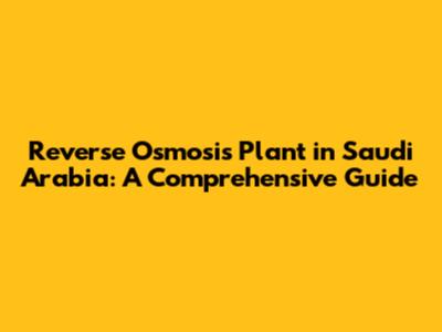 Reverse Osmosis Plant In Saudi Arabia: A Comprehensive Guide
