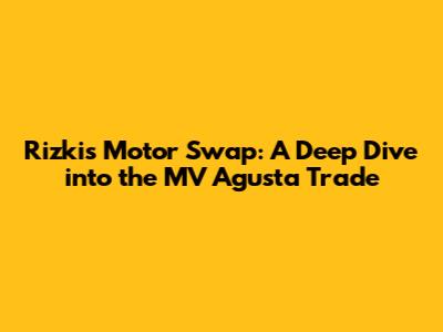Rizki's Motor Swap: A Deep Dive Into The MV Agusta Trade