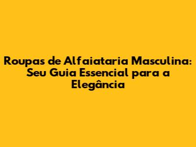 Roupas De Alfaiataria Masculina: Guia Completo Para Um Visual Impecável