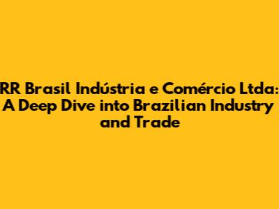 Hey guys! Ever wondered about the powerhouse companies shaping Brazil's industrial and commercial landscape? Well, today we're diving deep into one of them: RR Brasil Indústria e Comércio Ltda. This isn't just another company; it's a key player in understanding the dynamics of Brazilian business. Let's explore what makes RR Brasil tick, its impact on the market, and why it's a name you should know.