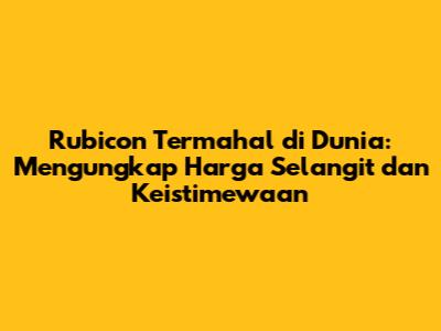 Hai guys, pernahkah kalian bertanya-tanya, berapa sih harga Rubicon termahal di dunia? Pasti bikin penasaran banget kan? Mobil ikonik yang satu ini memang sudah terkenal dengan ketangguhannya di medan off-road, desainnya yang gagah, dan tentu saja, harganya yang bikin kantong agak bergetar. Artikel ini akan mengajak kalian untuk menyelami lebih dalam tentang Rubicon termahal, mulai dari harga yang fantastis, spesifikasi yang bikin ngiler, hingga keistimewaan yang membuatnya begitu spesial.