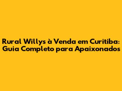 Rural Willys À Venda Em Curitiba: Guia Completo Para Apaixonados