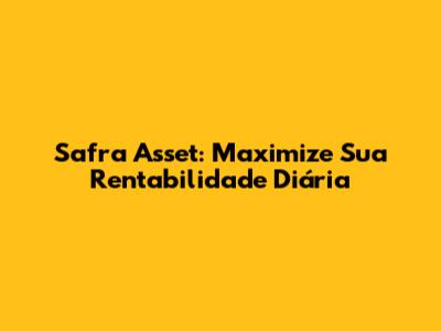 Safra Asset: Maximize Sua Rentabilidade Diária
