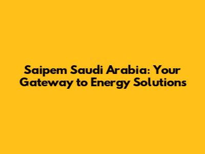 Saipem Saudi Arabia: Everything You Need To Know