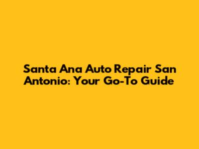 Santa Ana Auto Repair In San Antonio: Your Guide