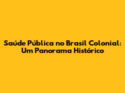 Saúde Pública No Brasil Colonial: Um Panorama Histórico