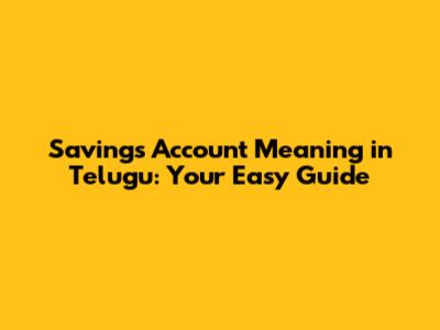 Savings Account Meaning In Telugu: Your Easy Guide