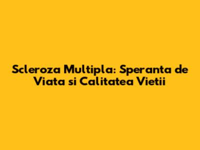 Scleroza Multipla: Speranta De Viata Si Calitatea Vietii