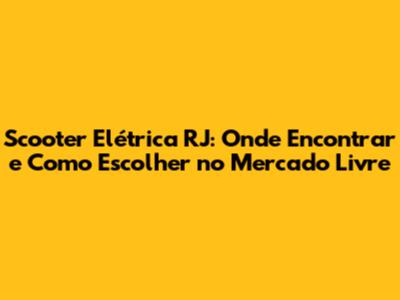 Como Escolher a Scooter Elétrica Perfeita no Mercado Livre RJ