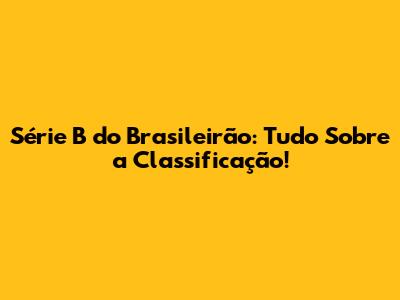 Série B Do Brasileirão: Tudo Sobre A Classificação!