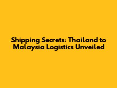 Shipping Secrets: Thailand To Malaysia Logistics Unveiled