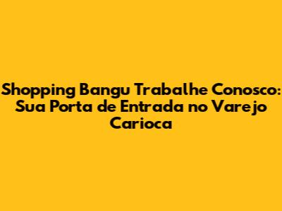 Shopping Bangu Trabalhe Conosco abre suas portas para diversos profissionais que buscam oportunidades de emprego no coração de Bangu, no Rio de Janeiro. Se você está em busca de uma carreira no varejo ou deseja mudar de emprego, este artigo é o seu guia completo. Vamos explorar tudo sobre as vagas disponíveis, os requisitos, como se candidatar e dicas para se destacar no processo seletivo. Prepare-se para descobrir como o Shopping Bangu pode ser o próximo passo em sua jornada profissional!