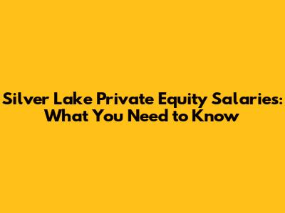 Silver Lake Private Equity Salaries: What You Need To Know