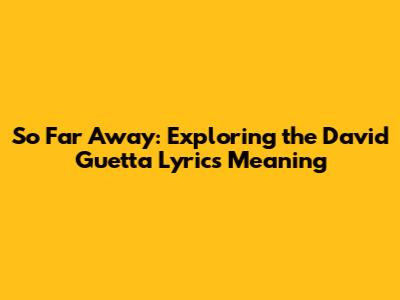 So Far Away: Exploring The David Guetta Lyrics Meaning