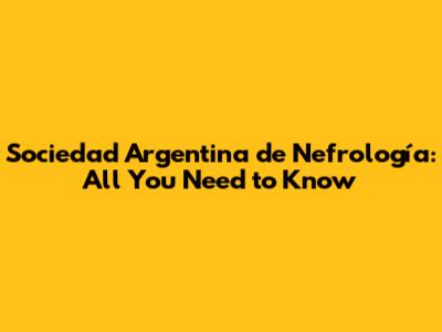 Sociedad Argentina De Nefrología: All You Need To Know