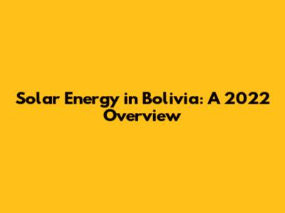 Solar Energy In Bolivia: A 2022 Overview