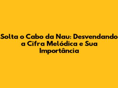 Solta O Cabo Da Nau: Desvendando A Cifra Melódica E Sua Importância