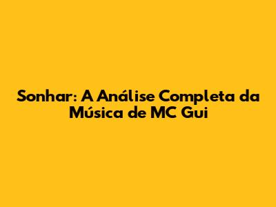 Sonhar: A Análise Completa Da Música De MC Gui