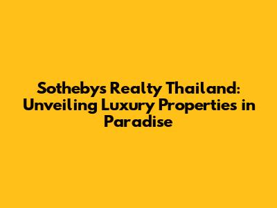 Hey there, real estate enthusiasts! Are you dreaming of owning a slice of paradise? Picture this: pristine beaches, crystal-clear waters, and the vibrant culture of Thailand. Well, if that sounds like your cup of tea, then Sotheby's Realty Thailand is your ultimate guide to finding the perfect luxury property. This article will dive deep into everything you need to know about navigating the Thai real estate market with the expertise of Sotheby's International Realty. We'll explore the types of properties available, the benefits of working with a reputable agency, and what makes Thailand such an attractive destination for property investment. So, grab a coffee, sit back, and let's embark on this exciting journey together!